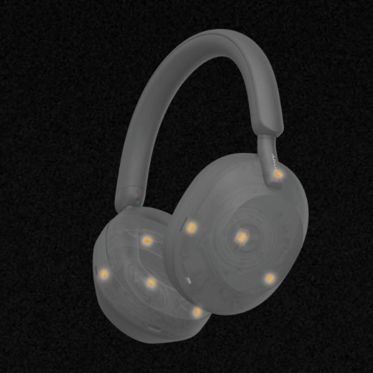 As of 10 April 2023. Ambient noise reduction according to research by Sony corporation, measured using JEITA-compliant guidelines for the top10 brands (by market share) of headband-style and truly wireless style wireless noise-cancelling headphones market.