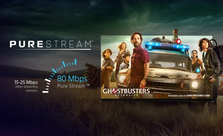 SONY PICTURES CORE features Pure Stream™ which can stream HDR movies at up to 80Mbps – similar to 4K UHD Blu-ray on a wide range of content. This means significantly more detail, colour and contrast than conventional 15-25Mbps streaming content.