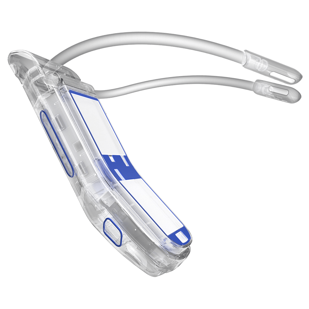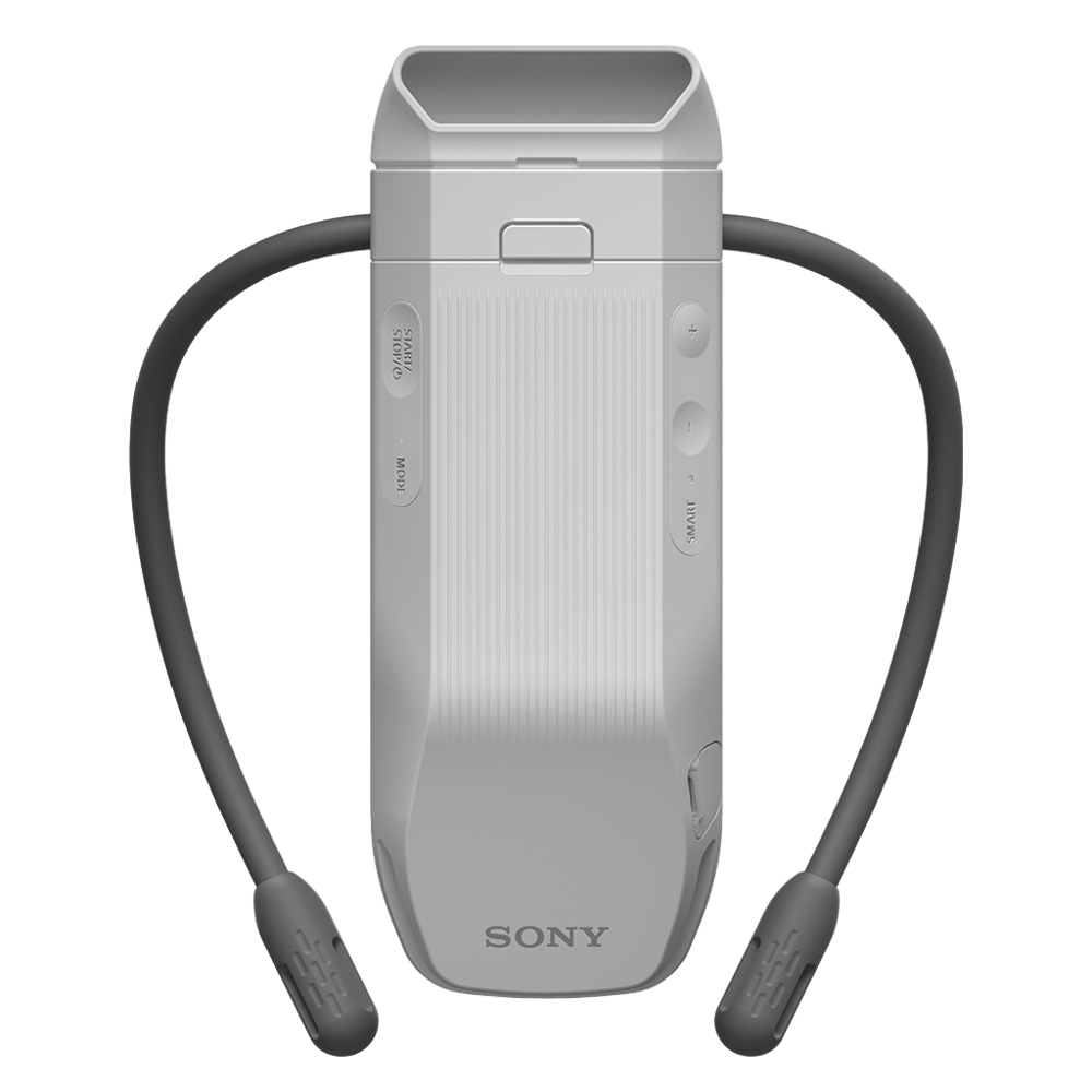 The neckband is made with a larger diameter flexible mechanical tube to improve both retention and flexibility. The tips of the band are equipped with band extensions to improve the feel of the band when worn.Because it flexibly contours around the neck, the weight of the main unit is not a concern and it is naturally comfortable to wear.