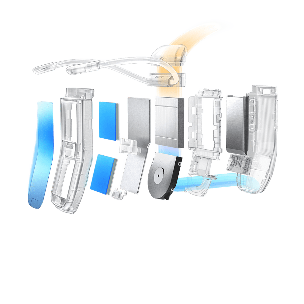 REON POCKET PRO has a heat dissipation mechanism designed to match the dual thermo module that is equipped with a newly developed high airflow cooling fan, which more efficiently exhausts the heat generated inside when COOL mode is used, thereby maintaining powerful cooling for a longer period of time.